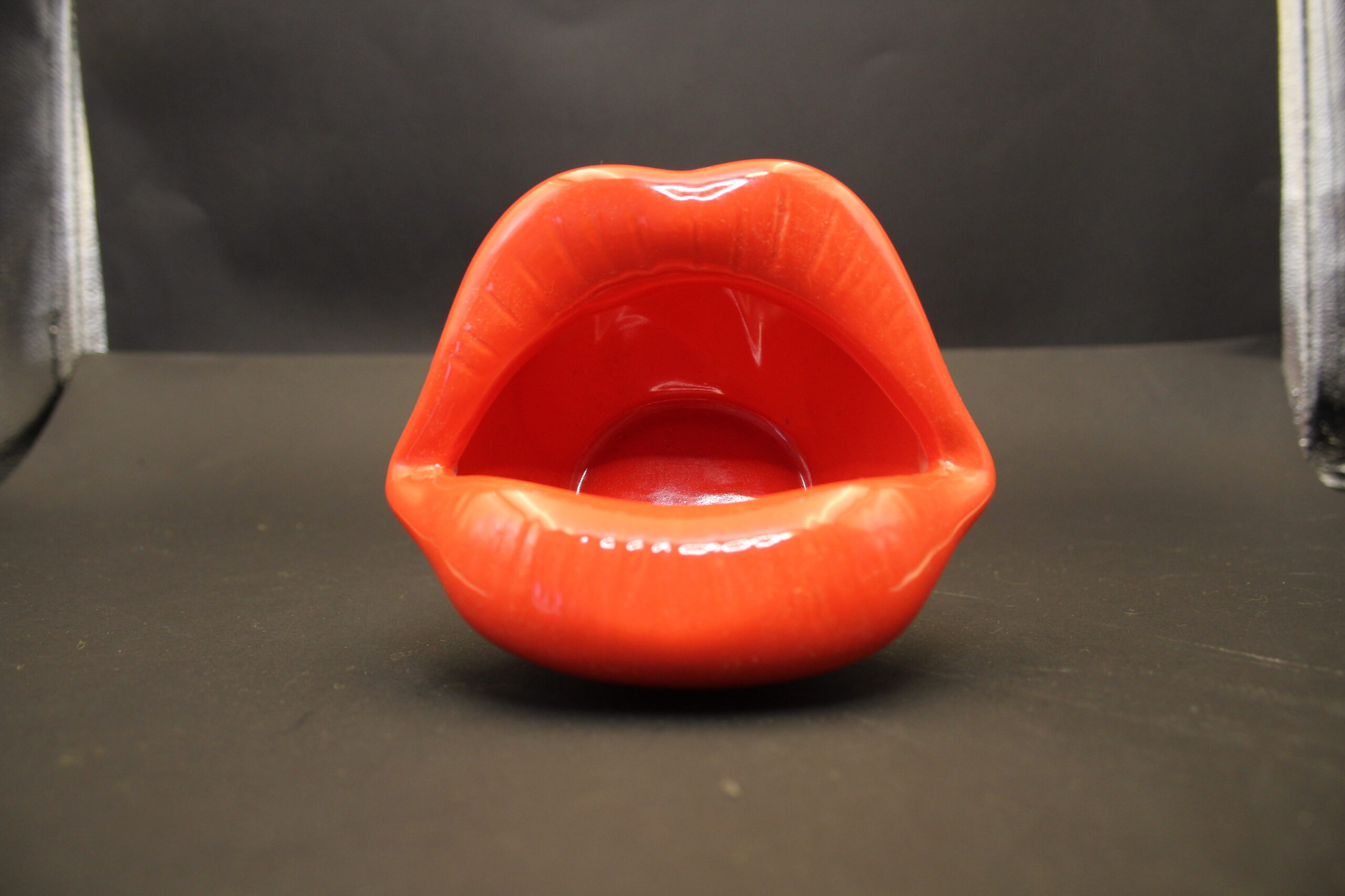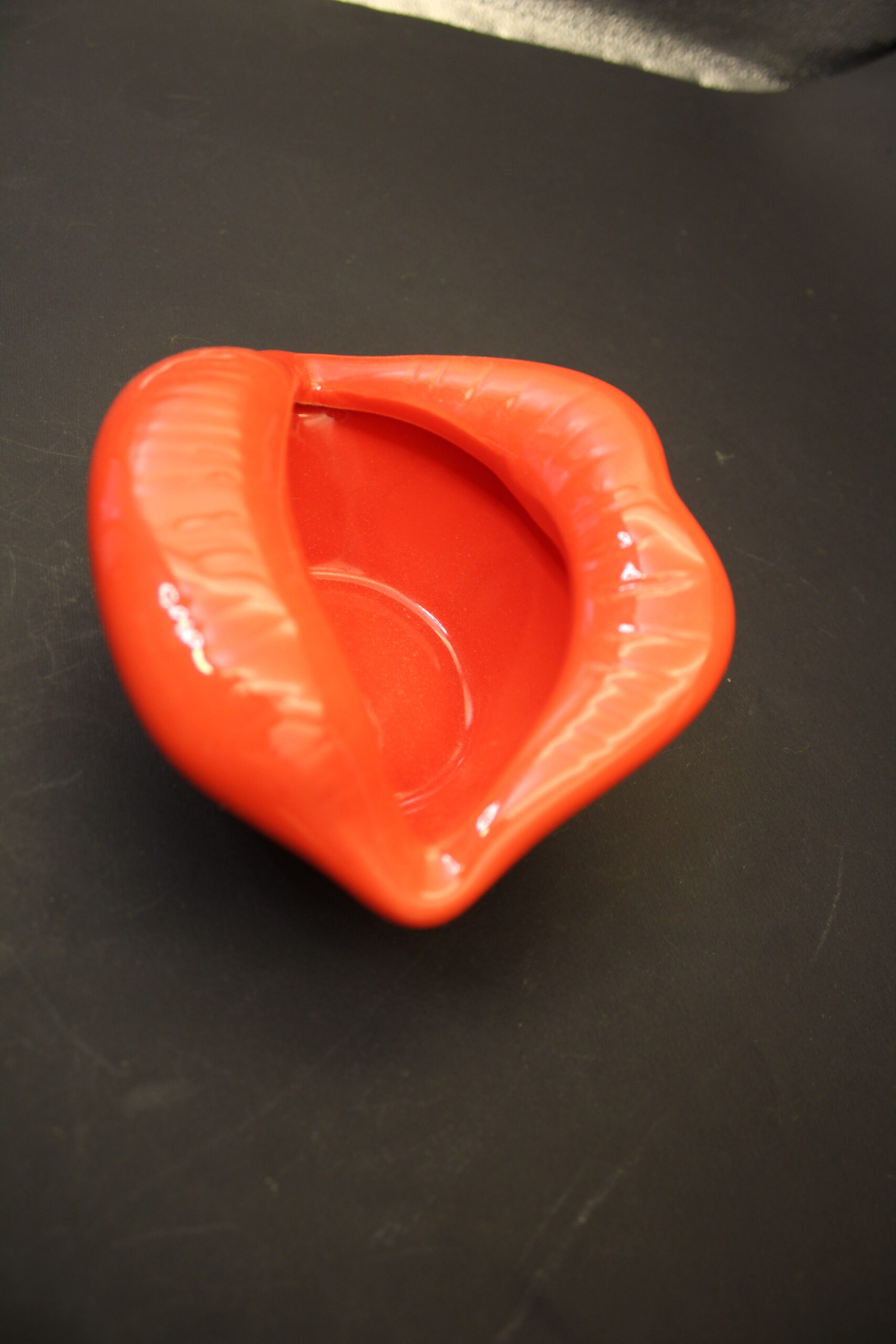 Design: Lip-shaped ashtray with glossy red finish